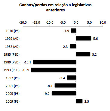 […] Isto representa uma perda de 15,4 pontos em relação aos resultados das legislativas de 2011. São perdas na ordem das sofridas pelo PSD nas autárquicas de 1989 e 1993, as maiores de sempre sofridas por partidos do governo em […]