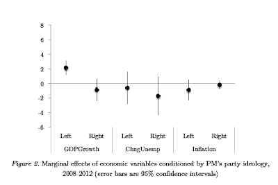 Leftist governments’ electoral performance was sensitive to GDP growth, rightist governments’ were not.