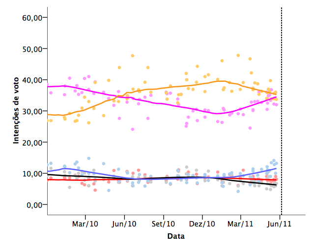 Estou a perceber. Acho que tem razão, em parte. Seria interessante conhecer as tendências dos resultados brutos e não apenas das estimativas. Só não estou de acordo numa coisa: seriam precisas regressões 🙂 Ou seja: eu podia estimar tendências limpas de house effects exactamente como faço agora, mas usando os brutos. Nunca me ocorreu isso. Agora é tarde, que não tenho os dados…