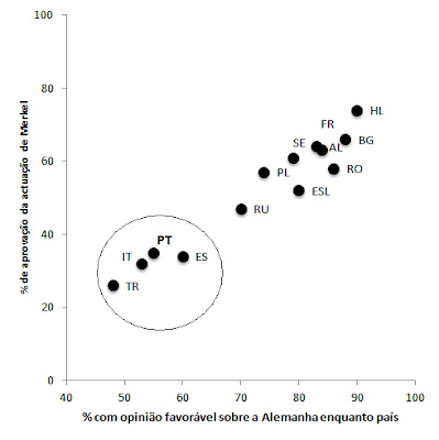 Na Turquia, em Portugal, em Itália, e em Espanha, essa avaliação é predominantemente negativa. E está fortemente relacionada com uma pior opinião da Alemanha enquanto país. Isto é algo que, sendo porventura compreensível na Turquia, me parece um bocado perturbante nos restantes países, devo dizer.